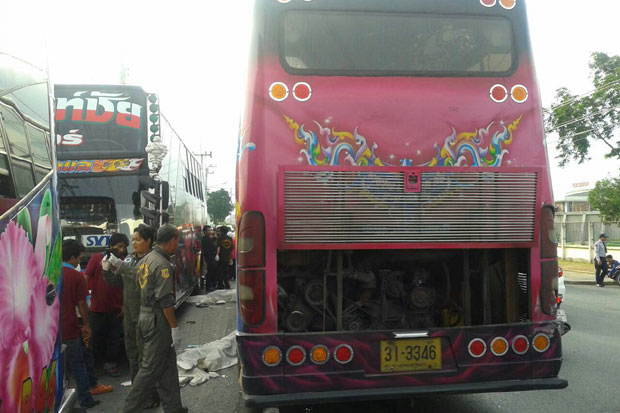 รถบัสรับส่งพนักงานซิ่งชนคนรอขึ้นรถบัสอีกคันในนิคมบางกระดี ดับคาที่ 2 ศพ เจ็บสาหัสอีก 1