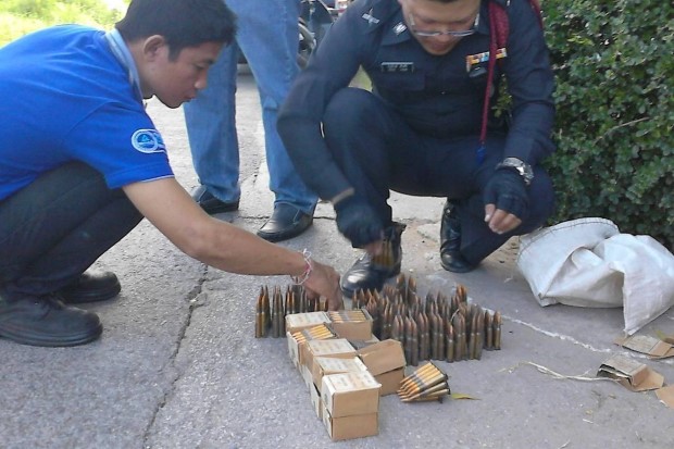 ทั้งนี้จึงรีบเดินทางไปตรวจสอบพบว่า ภายในถุงปุ๋ยมีลูกกระสุนปืนสงครามขนาด 7.62 มิลลิเมตร และกระสุนปืนขนาด 6.40 มิลลิเมตร ซึ่งใช้สำหรับปืนอาก้า และปืนกลเล็กยาว รวมจำนวน 630 นัด ซึ่งลูกกระสุนทั้งหมดมีสภาพใหม่เอี่ยม และยังใช้การได้ดี ตำรวจคาดว่าหลังจากคณะรักษาความสงบแห่งชาติ (คสช.) มีนโยบายระดมกวาดล้างอาวุธสงครามทั่วประเทศ ผู้ที่ครอบครองเครื่องกระสุนอาวุธสงครามดังกล่าวน่าจะเกรงกลัวความผิด จึงนำมาทิ้งไว้ในบริเวณที่เกิดเหตุ