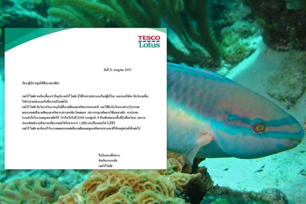 เทสโก้โลตัสประกาศยกเลิกขายเนื้อปลานกแก้ว หลังกลุ่มอนุรักษ์สิ่งแวดล้อมเรียกร้อง เหตุปลานกแก้วช่วยรักษาสมดุลแนวปะการัง