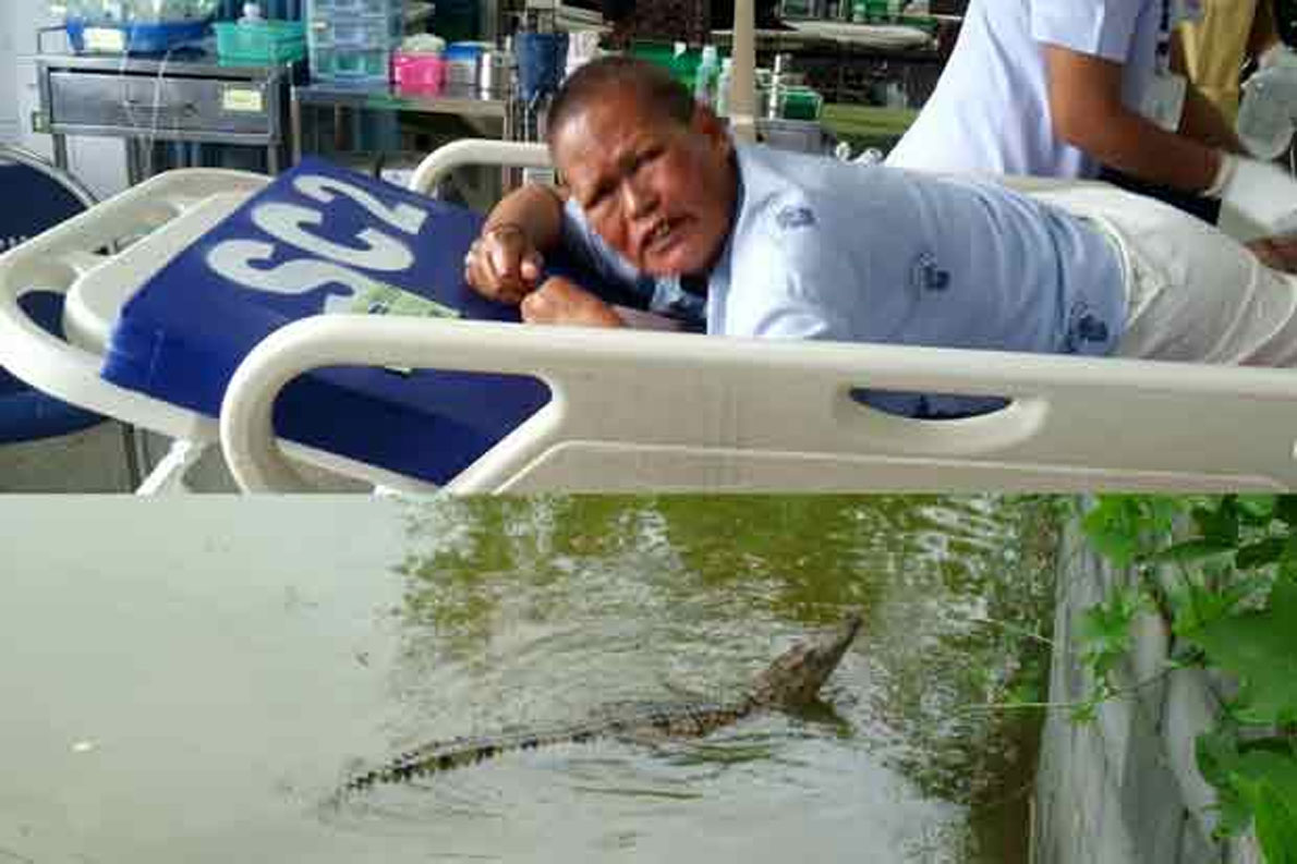 แม่ชีเก็บผักบุ้งหน้าวัดถูกจระเข้กัดถึงกระดูก