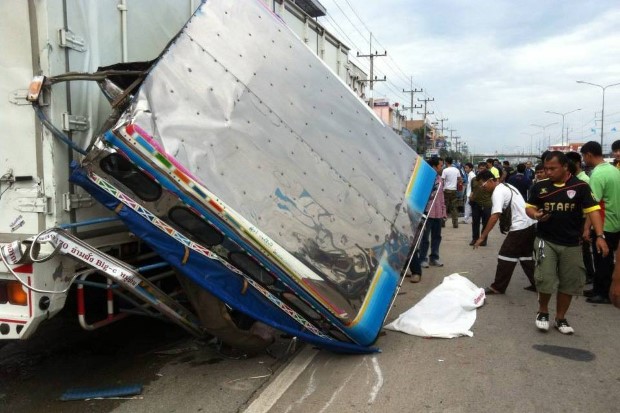รถสองแถวบรรทุกนักเรียนชนท้ายรถบรรทุก 6 ล้อจอดข้างทาง นักเรียนเสียชีวิต 1 ราย บาดเจ็บ 22 ราย