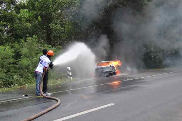 เมื่อวันที่ 7 ส.ค.57 ด.ต.ไชยยา สุวรรณมณี ผบ.หมู่ สถานีตำรวจทางหลวงนครศรีธรรมราช ได้รับแจ้งเหตุรถชนกันและมีรถเก๋งไฟไหม้ บนถนนทางหลวง 4103 สายเบญจมะ-นาพรุ หมู่ 3 ต.ไชยมนตรี อ.เมือง จึงประสานงานกับรถดับเพลิงของเทศบาลตำบลนาสาร อ.พระพรหม และมูลนิธิประชาร่วมใจรีบรุดไปที่เกิดเหตุ พบรถยนต์เก๋งยี่ห้อฮอนด้าซีวิค ทะเบียน กท-1152 ภูเก็ต เพลิงกำลังลุกไหม้ จึงทำการฉีดน้ำดับเพลิงนานประมาณ 15 นาทีเพลิงจึงสงบ โดยพบว่ารถเก๋งคันดังกล่าวติดตั้งแก๊ส แอลพีจีด้วย แต่ไม่พบตัวเจ้าของรถเก๋งคันดังกล่าวแต่อย่างใด