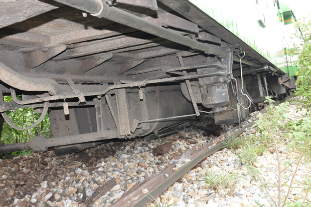 รถไฟตกรางเมืองกาญจน์คาดไม้หมอนผุ