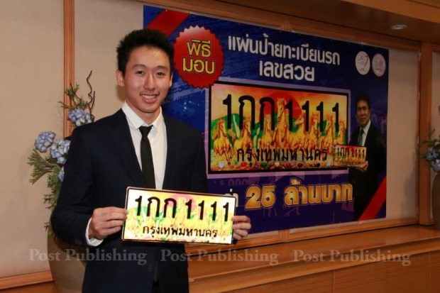 หนุ่มน้อยคนนี้คือผู้ชนะการประมูลป้ายทะเบียนเลขสวย หมวด 1 กก 1111 ด้วยราคา 25 ล้านบาท นับว่าสูงสุดในประวัติศาสตร์รอบ 11 ปีตั้งแต่มีการจัดประมูลขึ้นโดยกรมขนส่งทางบก