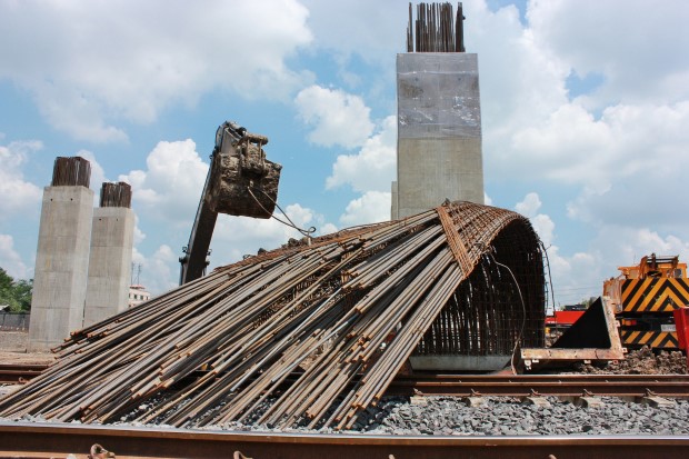 โครงเหล็กตอม่อทับรางรถไฟย่านรังสิต