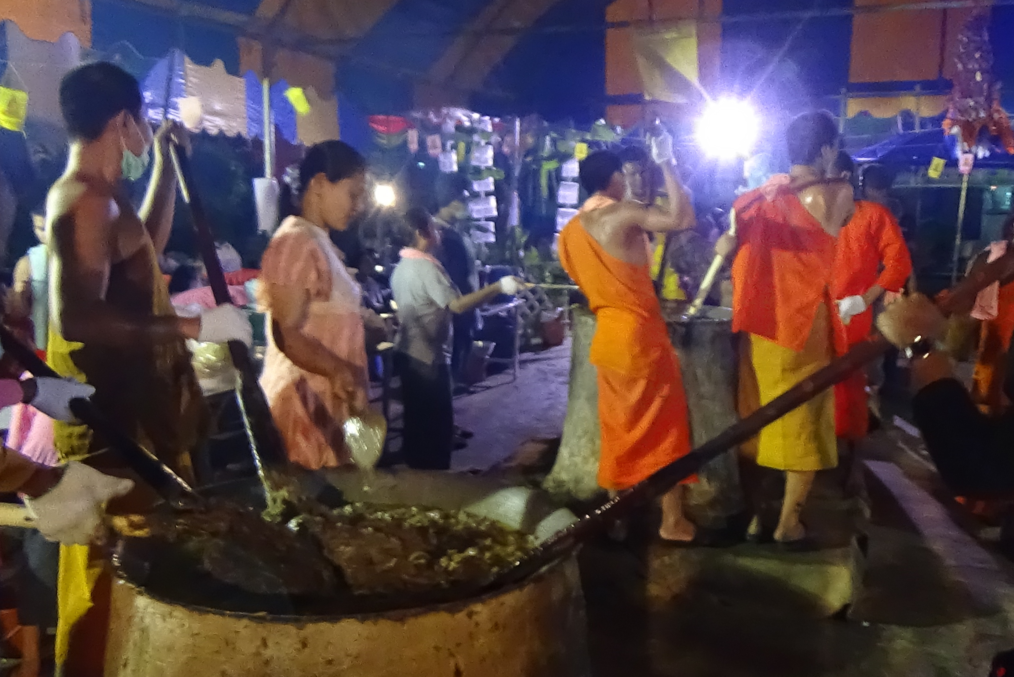 สุรินทร์-ชาวพุทธเมืองช้างร่วมพระ เณรกวนข้าวทิพย์รับออกพรรษา ถวายเป็นพุทธบูชา