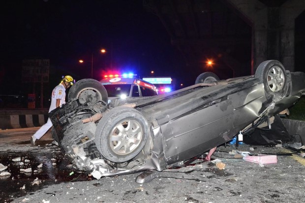 เก๋งพุ่งตกโทลล์เวย์ดับ1คาดไม่คุ้นเส้นทาง