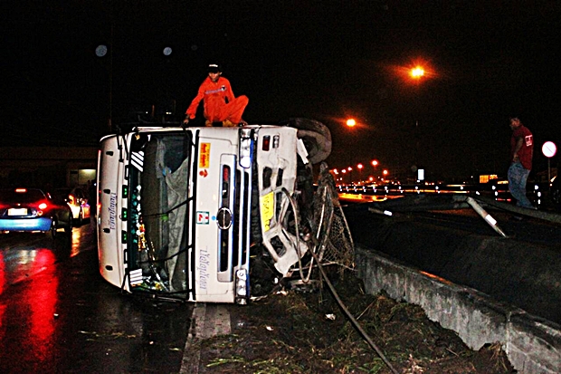 เมื่อวันที่ 20 ต.ค.57 เวลา20.30น. เกิดอุบัติเหตุรถบรรทุก 18 ล้อ เสียหลักพลิกคว่ำและชนเข้ากับกำแพงกั้นทางมอเตอร์เวย์ จนตกลงไปที่เลียบทางด่วน ที่ถนนเลียบทางมอเตอร์เวย์ ฝั่งมุ่งหน้า บางนาหลัก กม.ที่ 30 หมู่ที่10 ต.บึงคำพร้อย อ.ลำลูกกา จ.ปทุมธานี