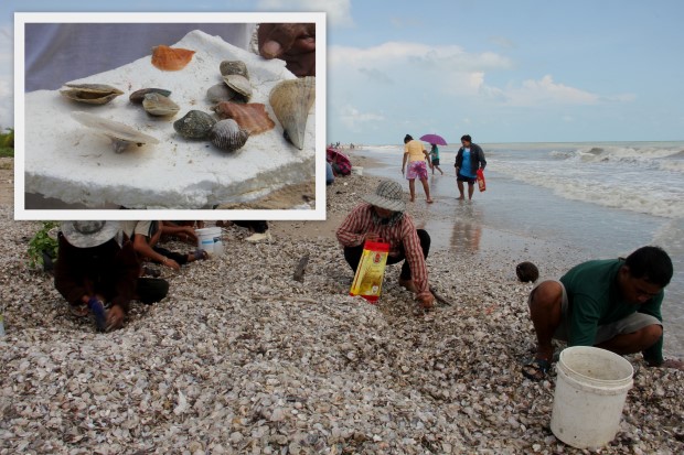 คลื่นแรงซัดหอยทะเลกองเต็มหาดปากพนัง