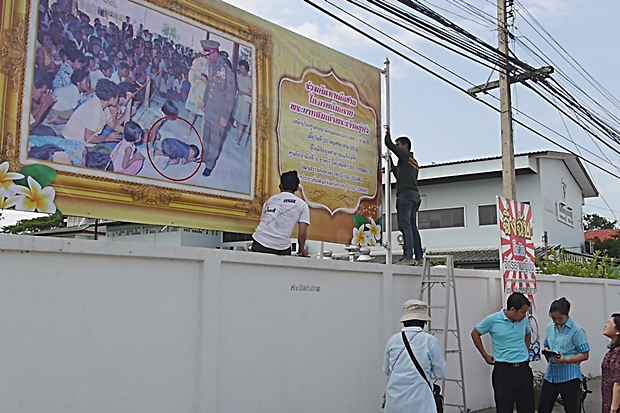 ราชบุรี-วัฒนธรรมจังหวัดราชบุรีขึ้นป้ายประกาศตามหาเด็กกราบพระบาทในหลวง