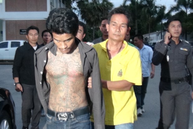 นายสมโภช เป็นบุคคลเดียวกันในภาพที่นายนายอดิศักดิ์ ศรีสะอาด หรือเบนซ์ ท่าทราย นำไปโพสต์ลงในเฟซบุ๊ก ขณะกำลังยืนถอดเสื้อโชว์รอยสักเต็มตัวและถืออาวุธปืนสงคราม และจากการสอบสวน ผู้ต้องหายอมรับว่าเป็นคนคนเดียวกันกับภาพที่โพสต์จริง เมื่อปี2552 เคยถูกจับกุมในคดียาบ้าและคุมขังที่เรือนจำอ.ทองผาภูมิได้รู้จักและสนิทสนมกับเบนซ์ ท่าทราย ซึ่งพ้นโทษออกมาก่อน ขณะที่ตัวเองเพิ่งพ้นโทษเมื่อเดือนก.ย.57