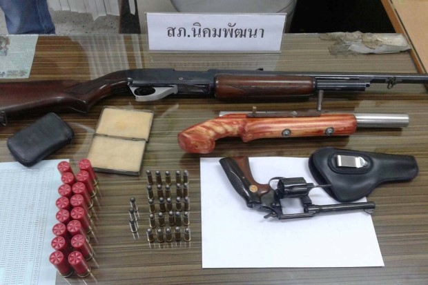 เมื่อวันที่ 14 ธ.ค. พ.ต.ท.ชโลธร เปรมปรี รอง ผกก.ป.สภ.นิคมพัฒนา จ.ระยอง พร้อมกำลังเจ้าหน้าที่ชุดปราบปรามพิเศษจับกุมนายไพฑูรย์ ฤทธิ์ประเสริฐ ภายในบ้านพัก ใน ต.มะขามคู่ อ.นิคมพัฒนา ยึดของกลางอาวุธปืนลูกซองสั้นไทยประดิษฐ์จำนวน 1 กระบอก อาวุธปืนลูกซองยาว จำนวน 1 กระบอก อาวุธปืนพกสั้นขนาด.38 ยี่ห้อโคลท์ จำนวน 1 กระบอก เครื่องกระสุนปืนลูกซองเบอร์ 12 จำนวน 16 นัด เครื่องกระสุนปืนขนาด .38 จำนวน 28 นัด ซองใส่ปืนสีดำ 1 อัน กระเป๋าหนังใส่เครื่องกระสุนปืน 1 ใบและ กระเป๋าสะพายสีดำ 1 ใบ
