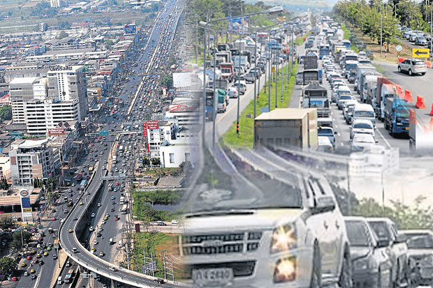 ปริมาณรถจะหนาแน่นจากกรุงเทพมหานครไปจนถึง จ.นครราชสีมา จากนั้นแยกเส้นทางสู่ภาคอีสานเหนือ และอีสานใต้