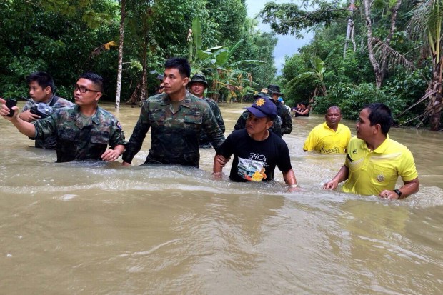 นราธิวาส-นายอำเภอบาเจาะสุดแกร่งลุยแจกของช่วยน้ำท่วมช่วยเหลือชาวบ้าน