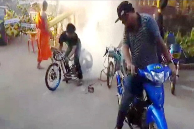 บิดคันเร่ง-เบิร์นยางสนั่นวัดในงานศพช่างแต่งรถ
