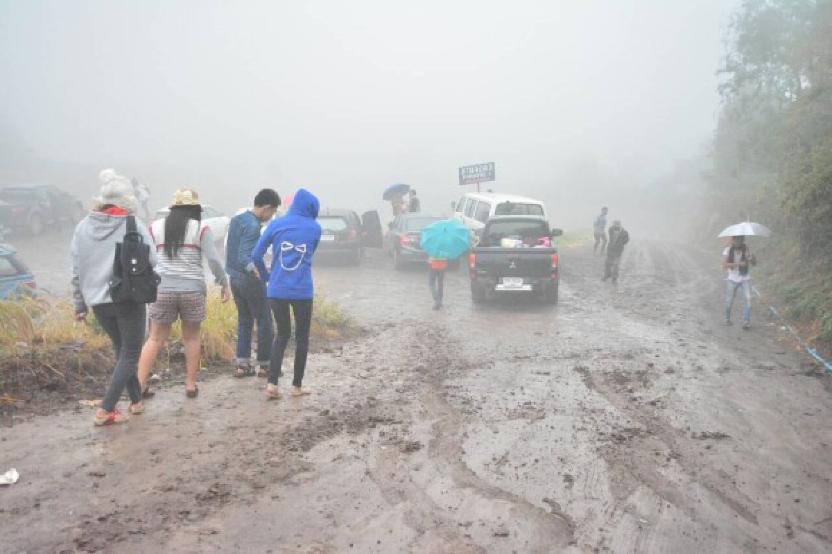 เขาค้อ-ภูทับเบิกเจออากาศแปรปรวน ทั้งฝนตก-หมอกจัด ลานจอดรถกลายเป็นโคลน รถลื่นเฉี่ยวชนหลายราย