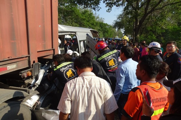 รถตู้ชนท้ายรถเทรลเลอร์ดับ2สาหัส4