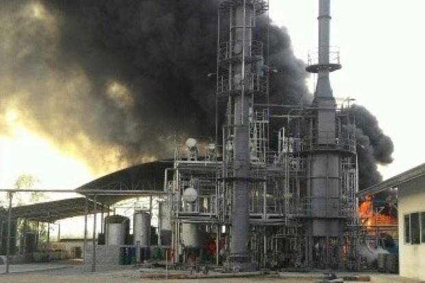 ไฟไหม้โรงกลั่นน้ำมันบางละมุงเสียหาย