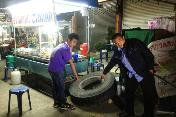 รถบรรทุกล้อหลุดกระเด็นใส่คนนั่งกินข้าวริมถนนเจ็บ1ราย