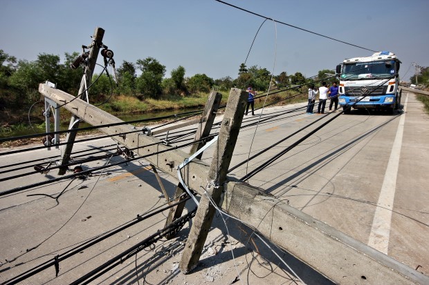 สิบล้อยกดั๊มพ์ไม่พ้นเกี่ยวเสาไฟล้ม12ต้น