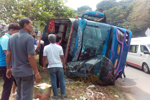 รถทัวร์นร.เบรคมีปัญหาขณะลงเขาพลิกคว่ำเจ็บ7ราย