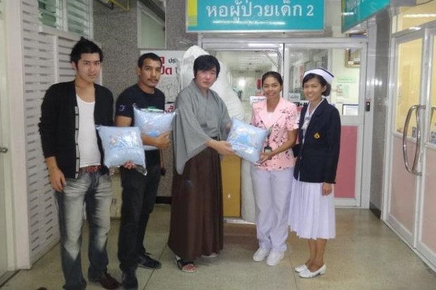 ผมได้รับหมอนประมาณ 60 ใบ แทนคำขอโทษ จากสนามบินสุวรรณภูมิครับ เราเลยนำไปมอบให้กับเด็กๆที่ป่วยอยู่ที่โรงพยาบาลรามาธิบดีทั้งหมดครับ แต่เราไม่สามารถจะนำรูปเด็กๆมาโพสทางอินเตอร์เนตได้ครับ