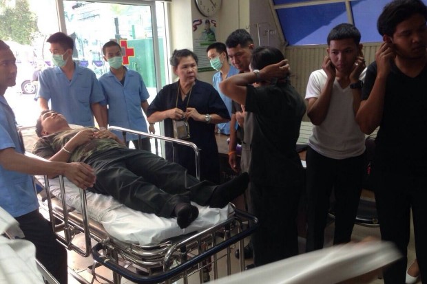 เบื้องต้นมีผู้บาดเจ็บ 9 ราย จากเหตุดังกล่าว ในจำนวนนี้มีอาการสาหัส 1 ราย โดยทั้งหมดได้ถูกนำส่งโรงพยาบาลพระมงกุฎเกล้าแล้ว