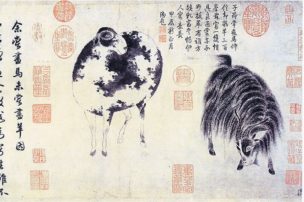 ในบรรดาภาพจิตรกรรมจีนโบราณ มีภาพหนึ่งโด่งดังเป็นพิเศษ ถือเป็นภาพเขียนชิ้นเอกของยุคราชวงศ์หยวน คือ ภาพหยางสองตัว (&>0108;&&2650;&>2270; - เอ้อร์หยางถู) วาดโดย จ้าวเมิ่งฝู บัณฑิตผู้มากความสามารถ และเป็นเชื้อพระวงศ์ราชวงศ์ซ่งที่สวามิภักดิ์ต่อราชวงศ์หยวนของชาวมองโกล ภาพนี้ยิ่งใหญ่โดดเด่น เพราะวาดภาพตัวหยางแบ่งออกชัดเจนว่าเป็นแพะกับแกะ ทั้งยังวาดด้วยลายเส้นละเมียดละไม ทำให้ผู้คนในยุคหลังต่างปรารถนาจะครอบครอง ดังจะเห็นได้ว่า ในภาพมีตราประทับแสดงความเป็นเจ้าของเต็มไปหมด รวมถึงอักษรประเมินคุณค่าโดยบุคคลสำคัญ เช่น พระเจ้าเฉียนหลง แห่งราชวงศ์ชิง
