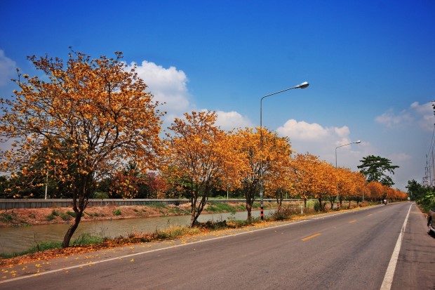 ที่บริเวณ ริมถนนเลียบคลอง 13 หมู่ 5 และ หมู่ 6 ต.พืชอุดม อ.ลำลูกกา จ.ปทุมธานี มีต้นเหลืองเชียงราย ปลูกอยู่ริมคลอง ออกดอกเหลืองอร่าม เป็นระยะทางยาวประมาณ 2 กิโลเมตร โดยทางนางพิณณ์ชิตา วันสิริภักดิ์ นายก อบต.พืชอุดม ปลูกไว้หลายปีก่อน ตามโครงการปรับภูมิทัศน์ริมทาง แต่ต้นเหลืองเชียงราย เพิ่งออกดอกให้เห็นเมื่อปีที่แล้ว แต่ปีนี้ออกดอกมากกว่าปีที่แล้ว จนเหลืองอร่ามเต็มต้น สร้างความสวยงาม สบายตากับผู้ที่สัญจรผ่านไปมาในเส้นทางดังกล่าว หลายคนที่ผ่านเส้นทางดังกล่าว ต่างพากันจอดรถเพื่อลงมาบันทึกภาพเก็บไว้เป็นที่ระลึก เนื่องจากดอกไม้ชนิดนี้ จะออกดอกให้เห็นความสวยงาม เพียงปีละครั้งเท่านั้น