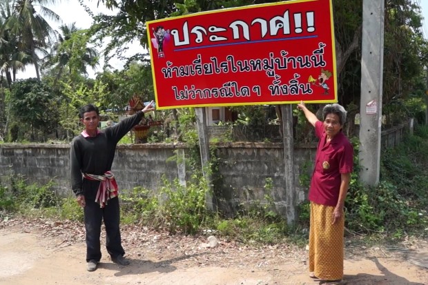 ชาวบ้านสุดทนติดป้ายไล่แก๊งต้มตุ๋น