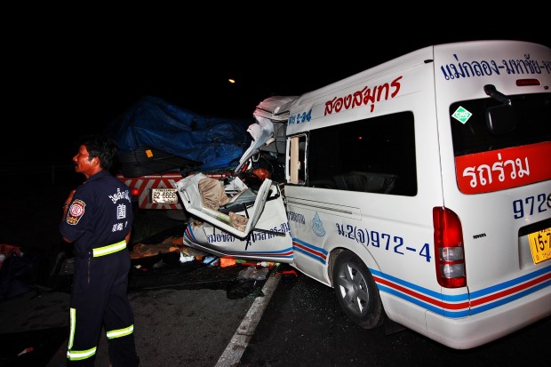 รถตู้โดยสารชนท้ายสิบล้อดับ1เจ็บ11