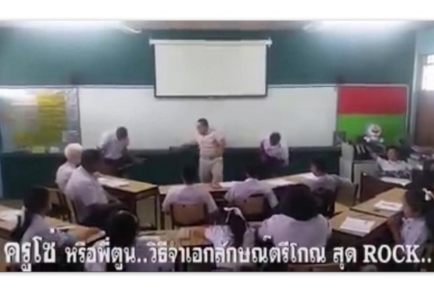 เมื่อวันที่ 17 มี.ค.มีคลิปวิดีโอการสอนของครูคนหนึ่ง กำลังกลายเป็นคลิปที่รับเสียงชื่นชมอย่างกว้างขว้างในสื่อสังคมคมออนไลน์ ด้วยความยาวเกือบ 3 นาที ที่ภายในคลิป เผยให้เห็นบรรยากาศการเรียนการสอน ในวิชาคณิตศาสตร์ของนักเรียนห้องหนึ่ง ซึ่งมีครูผู้ชายเจ้าของวิชา กำลังร้องเพลงประกอบดนตรีของวงร็อกชื่อดัง บอดี้สแลม ในเพลง “คราม” ซึ่งเนื้อหาของเพลงกลับไม่ใช่ เนื้อร้องตามปกติ แต่เป็นสูตรการจำเอกลักษณ์ตรีโกณมิติแทน อีกทั้งรอบข้างครูคนดังกล่าวนั้น ยังมีนักเรียนชาย2 คน กำลังถือไม้กวาดแสดงท่าดีดกีต้าร์ ออกอารมณ์ตามเพลงอย่างสนุกสนาน