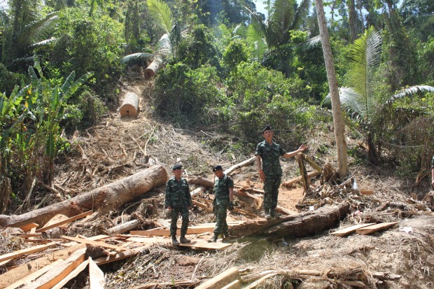 สุราษฎร์ธานี-ทหารเร่งตรวจสอบผู้เกี่ยวข้องลักลอบตัดต้นไม้ในป่าต้นน้ำเตรียมการ