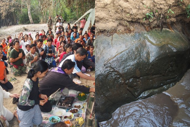 อุบลราชธานี-ชาวบ้านแห่สักการะนารายณ์บรรทมสินธุ์หลังน้ำโดมบนเทือกเขาพนมดงรักลดลงในช่วงหน้าแล้ง