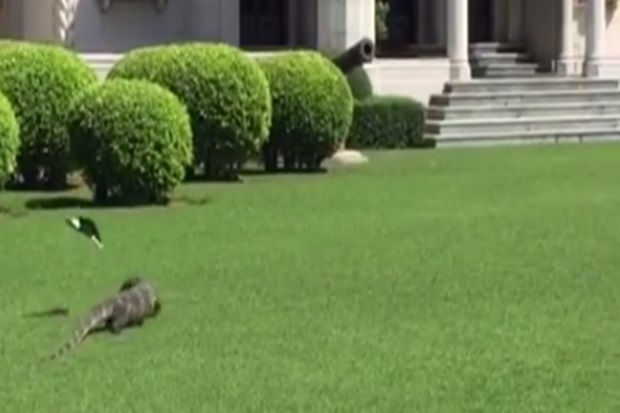 เมื่อวันที่ 21 พ.ค. หลังจากพล.อ.ประยุทธ์ จันทร์โอชา นายกรัฐมนตรีและหัวหน้าคณะรักษาความสงบแห่งชาติ (คสช.) เดินทางจาก กระทรวงศึกษาธิการ เข้าตึกไทยคู่ฟ้า ทำเนียบรัฐบาล ปรากฏว่า ได้มี "ตัวเงินตัวทอง" ขนาดใหญ่ความยาวประมาณ 1 เมตร เดินตัดสนามหญ้าตรงเข้าไปบริเวณหน้าตึกไทยคู่ฟ้า โดยระหว่างนั้น ได้มีนกเอี้ยงตัวหนึ่ง บินมาไล่จิก สกัดกั้น ตลอดเวลาที่อยู่บนสนามหญ้า แต่ตัวเงินตัวทองก็ไม่ได้ตื่นตกใจวิ่งหนีแต่อย่างใด