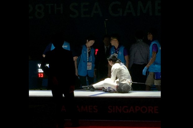 นันทา จันทสุวรรณสิน ความหวังลุ้นเหรียญทองประเภทฟอยล์ บุคคลหญิง มีปัญหาเป็นตะคริว ก่อนพ่าย หวัง เวนยิง ของเจ้าถิ่น 9-15 ในรอบรองชนะเลิศ คว้าเพียงเหรียญทองแดงปลอบใจ ในการเปิดฉากชิงชัยกีฬาฟันดาบวันแรก ที่สิงคโปร์ เมื่อวันที่ 3 มิ.ย.