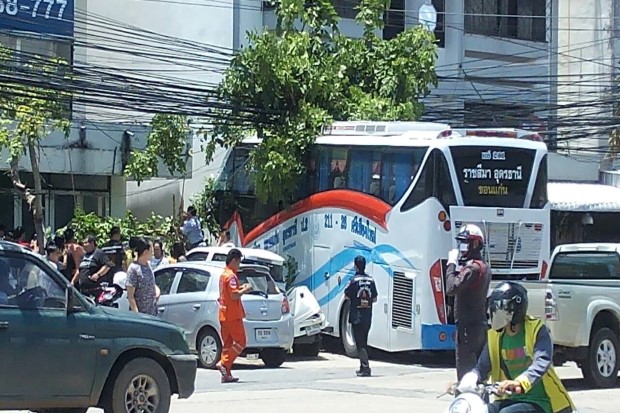 รถทัวร์เบรกแตกชนยับ6คันกลางเมืองขอนแก่น