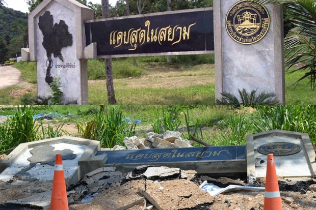 เมื่อวันที่12มิ.ย. โลกสังคมออนไลน์แชร์ภาพ ป้ายจุดแคบสุดในสยามตั้งอยู่ไกล้ผ่อนปรนด่านสิงขร บ้านไร่เครา ต.คลองวาฬ อ.เมือง จ.ประจวบคีรีขันธ์ ถูกโค่นล้มลงไปนอนอยู่กับพื้น ทั้งที่เป็นป้ายคู่บ้านคู่เมืองด่านสิงขรมาเป็นเวลานานร่วม 30 ปี และป้ายแห่งนี้ เคยเป็นที่ชื่นชอบของนักท่องเที่ยวเมื่อเดินทางมาที่ด่านสิงขรจะต้องพากันมาถ่ายรูปคู่กับป้ายใว้เป็นที่ระลึก