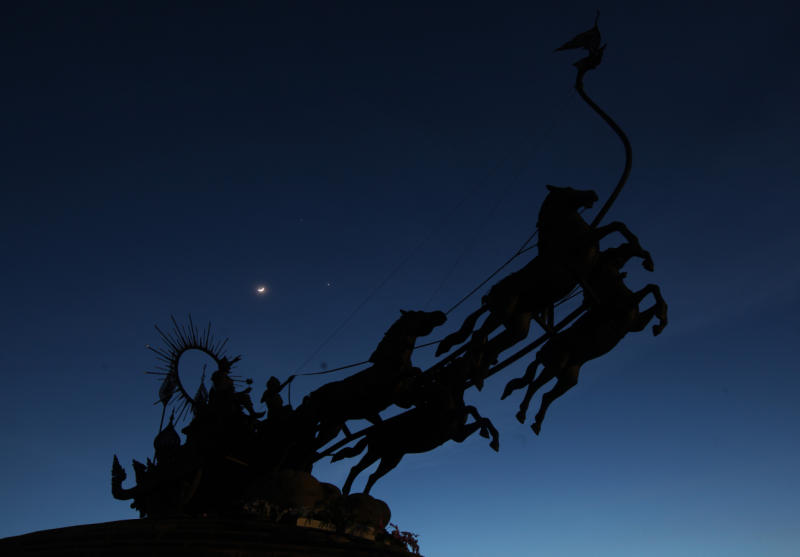 เกิดปรากฏการณ์ดาวเคียงเดือน ทางทิศตะวันตกเฉียงใต้ ดาวศุกร์และดาวพฤหัสบดี อยู่เคียงดวงจันทร์เสี้ยว