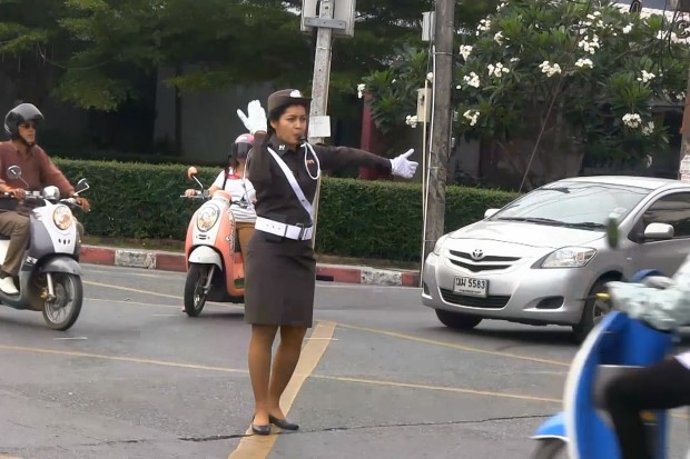 หาดใหญ่ส่งตำรวจหญิงโบกจราจรคลายเครียด