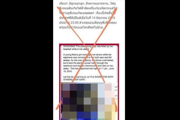 สุดมั่ว!ภาพสาวปินส์ตายเพราะใส่หูฟังขณะชาร์จแบตไม่ใช่เรื่องจริง