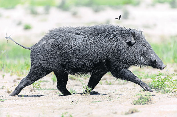 ปฏิกิริยาของหมูคือ ชาร์จ เอ๊ย เผ่น ก็ปืนของผมเป็นแค่กล้องถ่ายภาพ ไม่ได้สร้างบาดแผลเลือดตกยางออกใดๆ จะมาชาร์จละเลงเลือดแบบในนิยายป่าไปทำไม จังหวะมันเบนออกแล้วออกวิ่งจนทรายกระจุยกระจาย ผมก็ไล่จับโฟกัส รัวชัตเตอร์ใส่อุตลุด เหตุการณ์จบลงเพียงแค่ไม่กี่วินาที ไอ้หมูท่อกหายลับเข้าป่าไป ทิ้งไว้แต่ความตื่นเต้น