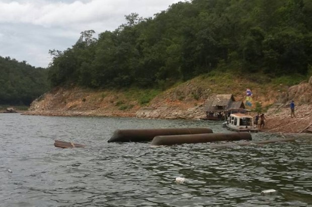 "แพ"ล่มในเขื่อนศรีฯโชคดีไม่มีนักท่องเที่ยว