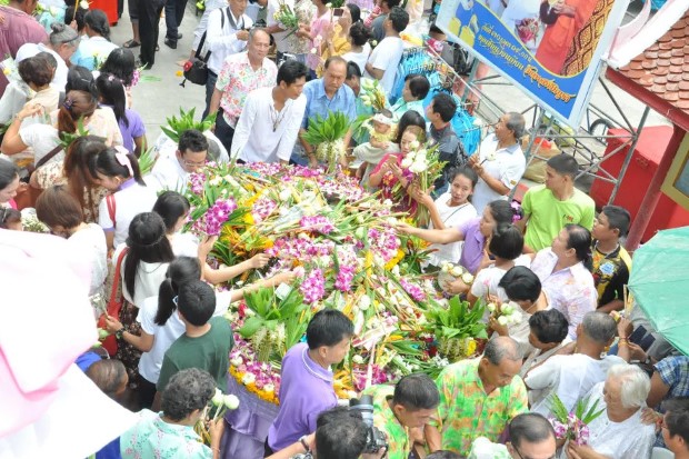 เมืองปากน้ำสืบสานประเพณีตักบาตรดอกไม้