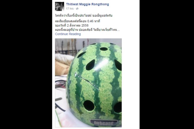 เมื่อวันที่ 2 ส.ค. สมาชิกเฟซบุ๊กชื่อ Thitiwat Maggie Rongthong ได้โพสต์ภาพและข้อความบอกเล่าประสบการณ์อันตรายของการปั่นจักรยานตอนกลางคืนที่ได้ประสบมา พร้อมเตือนให้ทุกคนระวังต่อการตกเป็นเหยื่อภัยสังคม