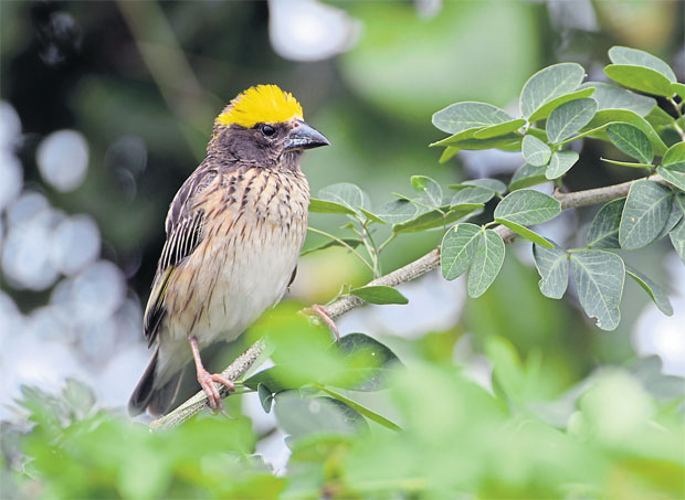 ขอนำเสนอพระเอกในหมู่กระจาบให้รู้จักกันก่อนตัวอื่น เจ้านี่ชื่อว่า นกกระจาบอกลาย (Streaked Weaver) แม้ชื่อจะออกแนว “กระจาบกระจิบ” แต่สถานภาพของมันไม่ “กระจอก” อยู่ในขั้น “เกือบหายาก” (Uncommon Resident) เลยทีเดียว
