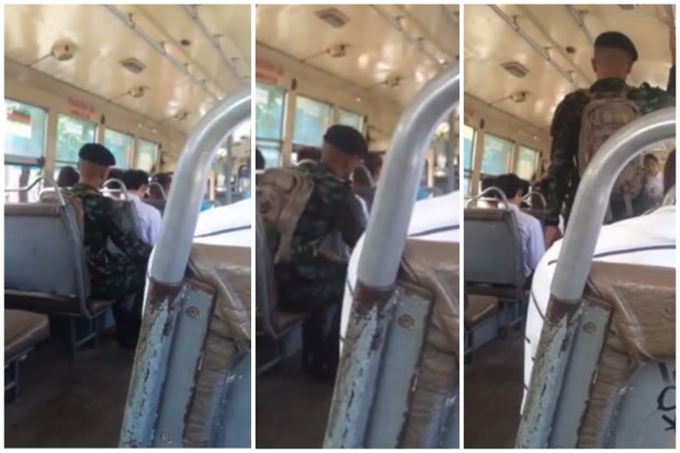 โลกออนไลน์กดไลค์ทหารยืนให้ประชาชนนั่งบนรถเมล์ (มีคลิป)