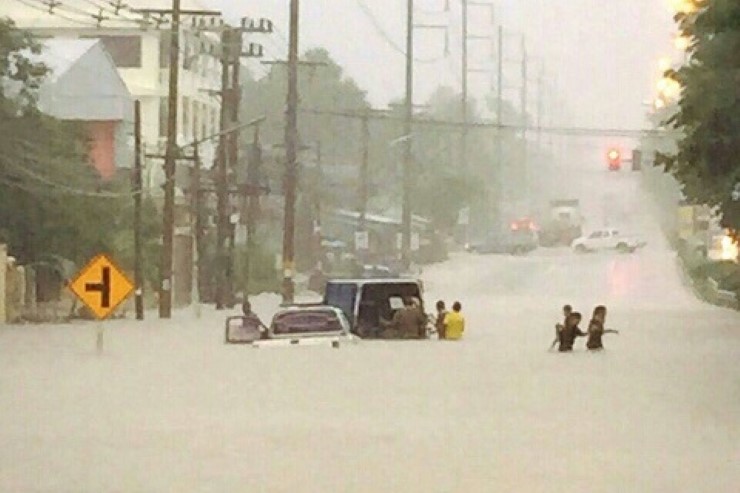 ระยองน้ำท่วมบางจุดสูงเกือบมิดหลังคารถ