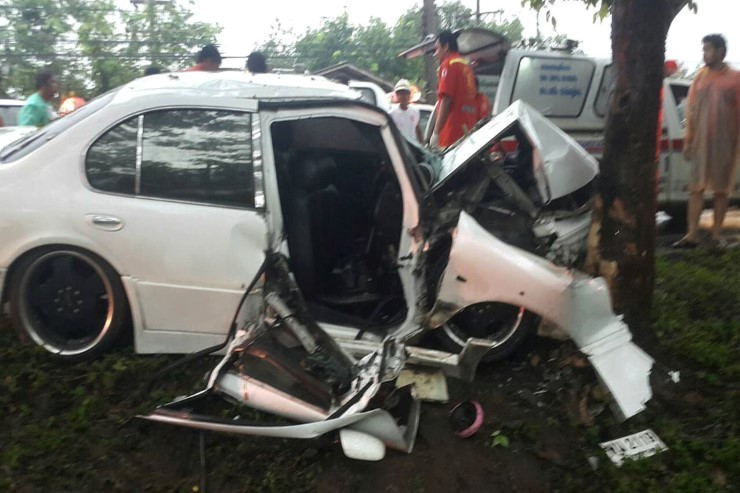 ซิ่งเก๋งฝ่าฝนชนต้นไม้ดับคาที่3ศพ