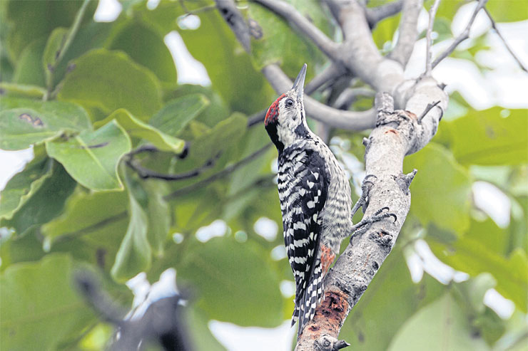 ในที่สุด เจ้าของเสียงก็ปรากฏตัว มากันเป็นคู่ผัวเมีย สีแดงบนกระหม่อมนกตัวผู้ ดึงดูดเลนส์ให้จับเป้าไปที่มัน มากกว่าสีดำบนกระหม่อมนกตัวเมีย สีแดงดูสะดุดตากว่าสีดำเป็นแค่เหตุผลรอง เหตุผลหลักก็คือ นักเลงนกทั้งหลายจะมีโหมดอัตโนมัติ ไม่ว่าอย่างไรก็ต้องส่องไปที่นกตัวผู้ก่อนนกตัวเมียเสมอ แบบว่าถ้าใคร (ดัน) เล็งใส่นกตัวเมียก่อน จะเข้าข่ายเพี้ยนสุดๆ เลยล่ะ 555